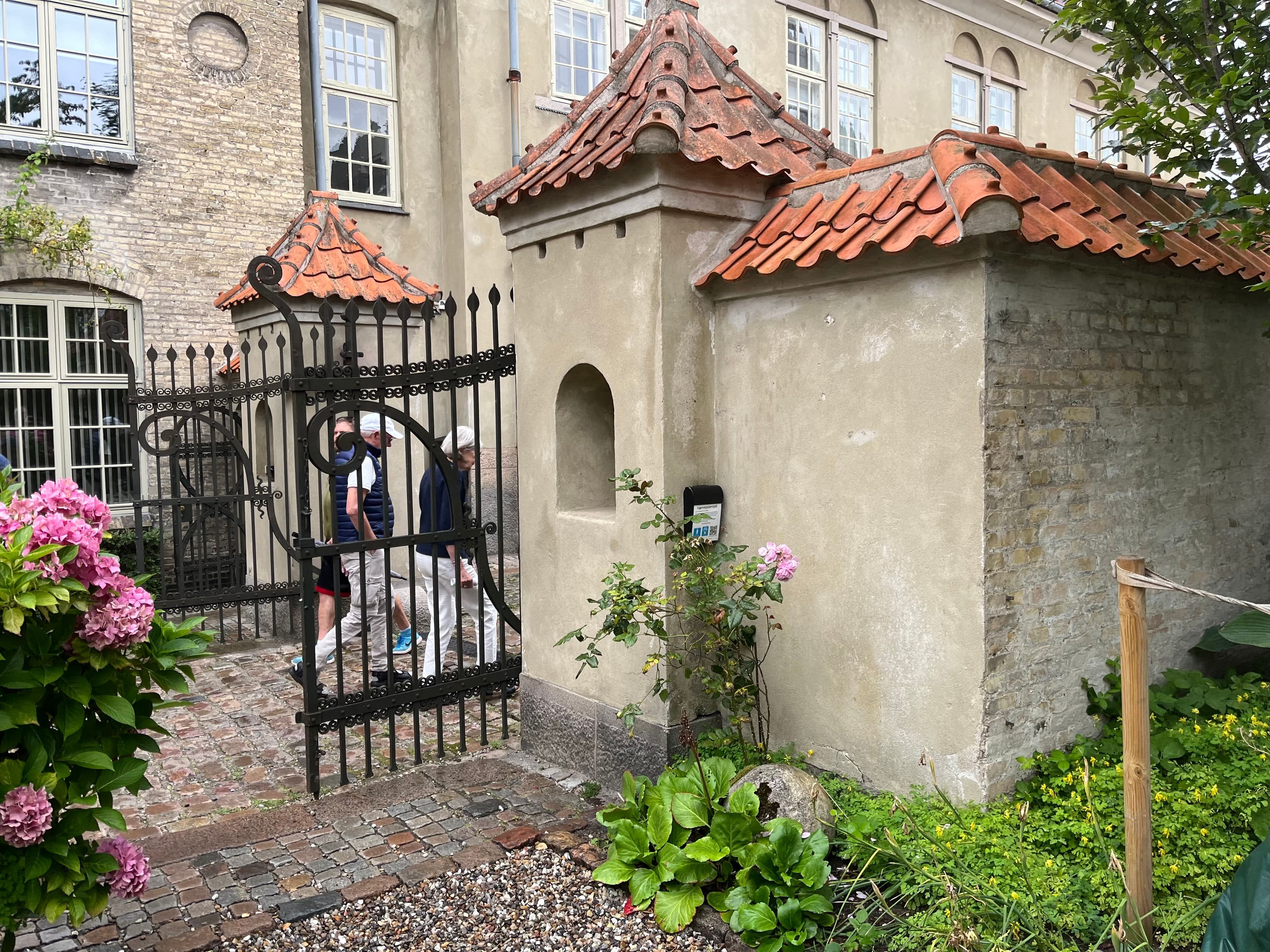 Find the stamp: The box with the Hærvej stamp is located in the outer cloister of Aalborg Monastery.